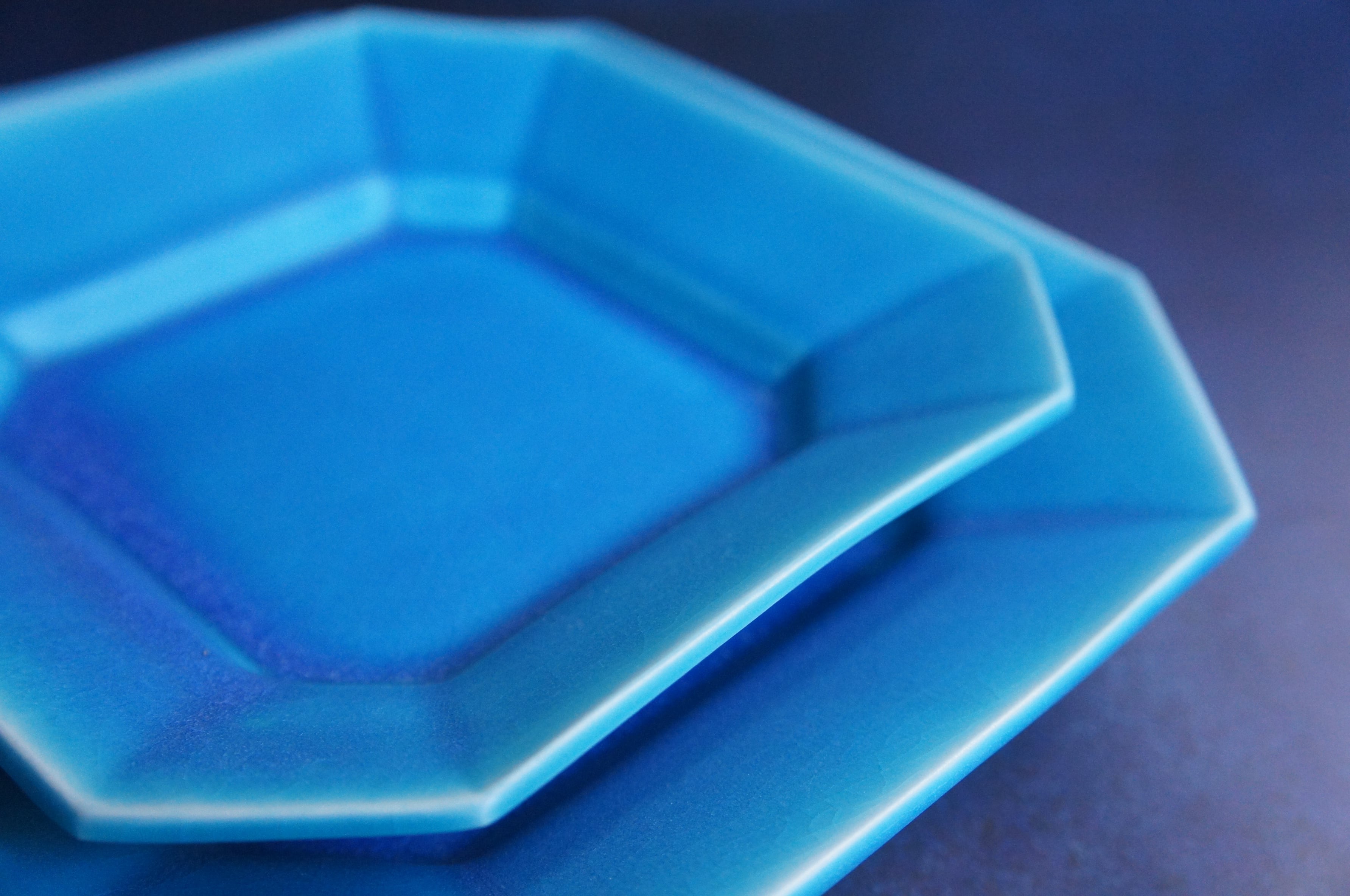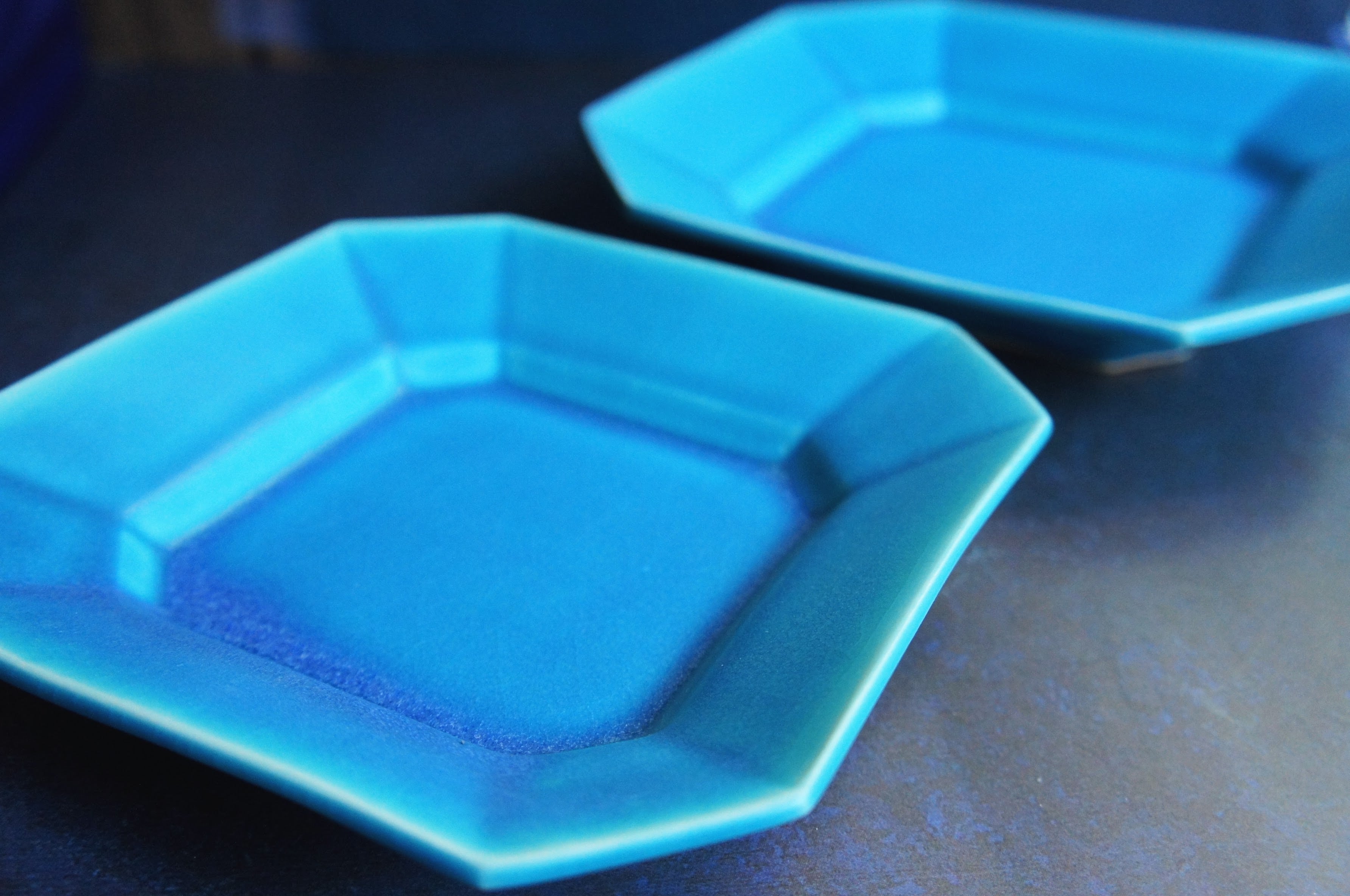 石垣島の陶器工房「琉而器(りゅうじき)」から、空と海の青をそのまま閉じ込めたようなスクエアプレートです。