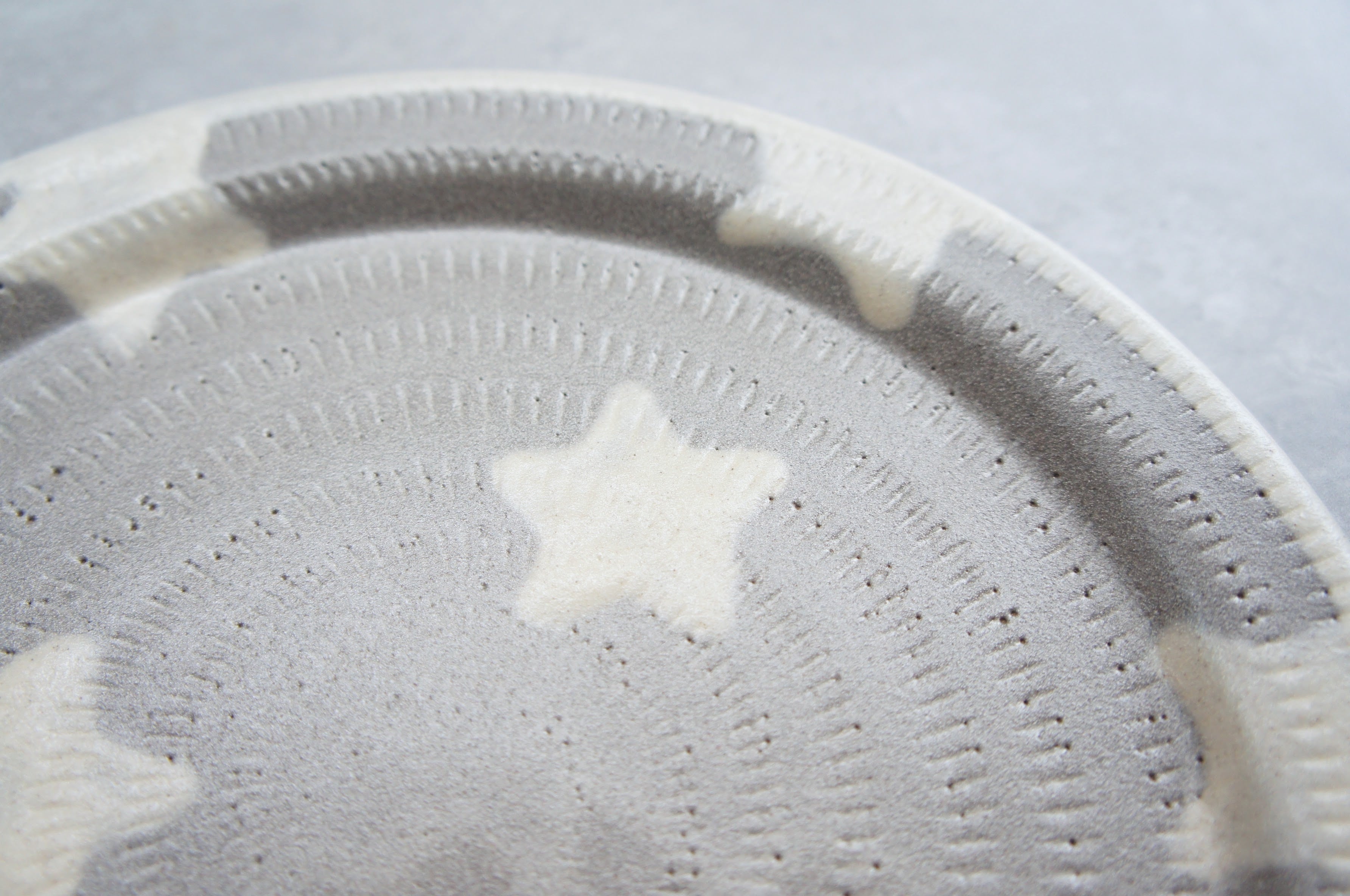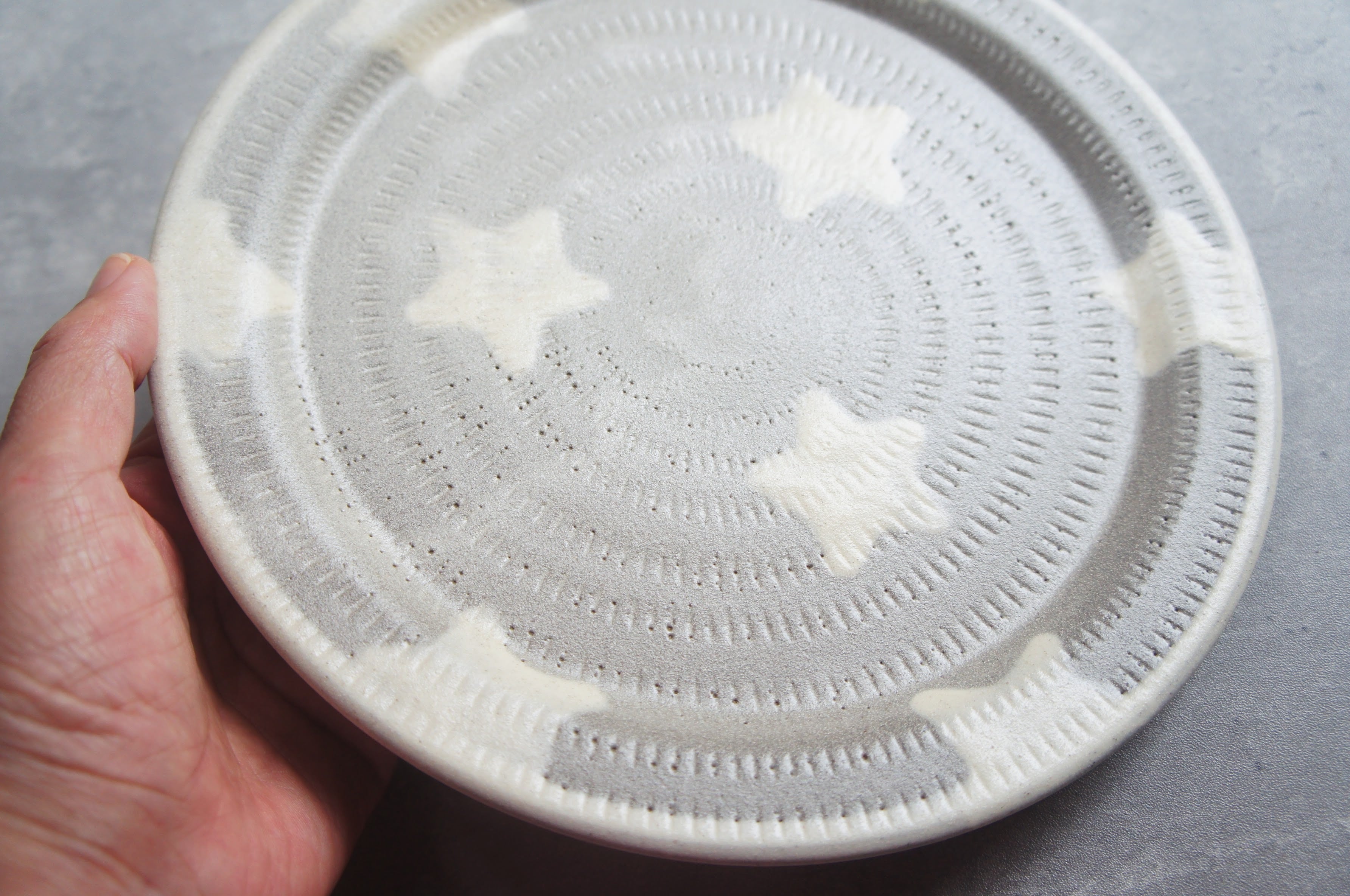 新入荷しました! 福岡・東峰村〈小石原焼〉の窯元 上鶴窯より、飛びカンナ×お星さま柄の器が届きました。 ポップで温かみのある器で、ワンプレート皿としてお楽しみいただけます。 土の素朴な質感と、遊び心。 毎日の食卓を、少しだけ“アート”に。 サイズ:直径約23.5cm × 高さ約2cm ※ 工芸品は、手作業で作られているため大きさ、形、色、模様、風合いなど、1点1点個体差がございます。ご理解の上、ご購入をお願い致します。