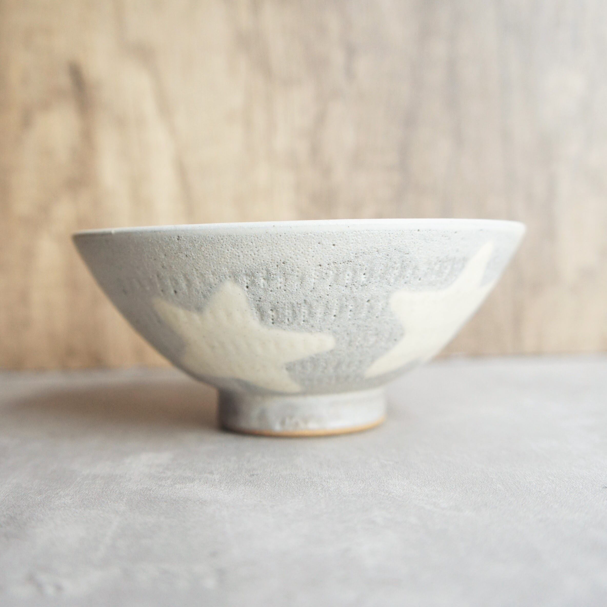 新入荷しました! 福岡・東峰村〈小石原焼〉の窯元 上鶴窯より、飛びカンナ×お星さま柄の器が届きました。 ポップで温かみのある器で、土の素朴な質感と、遊び心が満載です。 毎日の食卓を、少しだけ“アート”に。 サイズ:直径約13cm × 高さ約5.5cm ※ 工芸品は、手作業で作られているため大きさ、形、色、模様、風合いなど、1点1点個体差がございます。ご理解の上、ご購入をお願い致します。