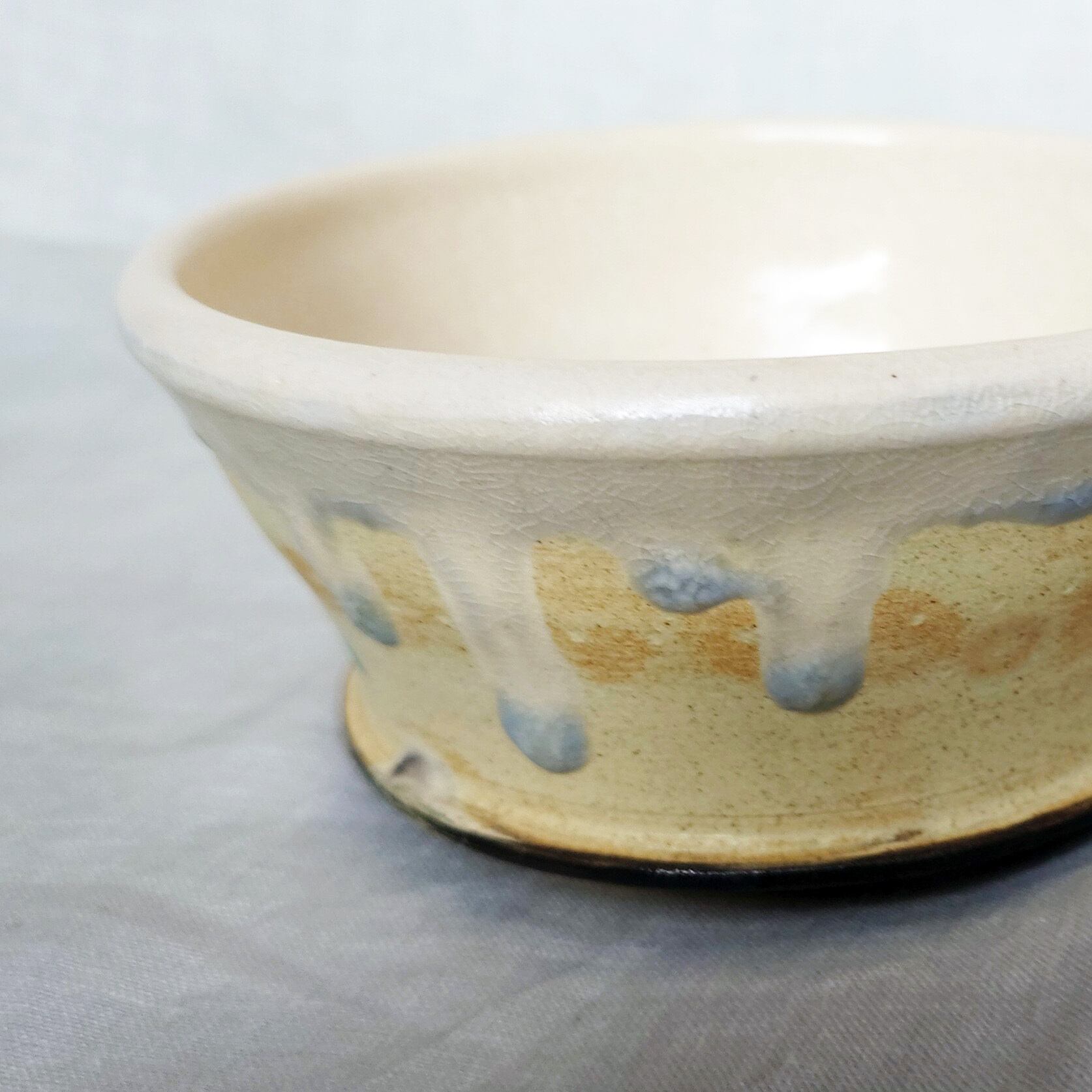 生成りの釉薬に、自然に流れる青灰色がやさしい表情の一客です。