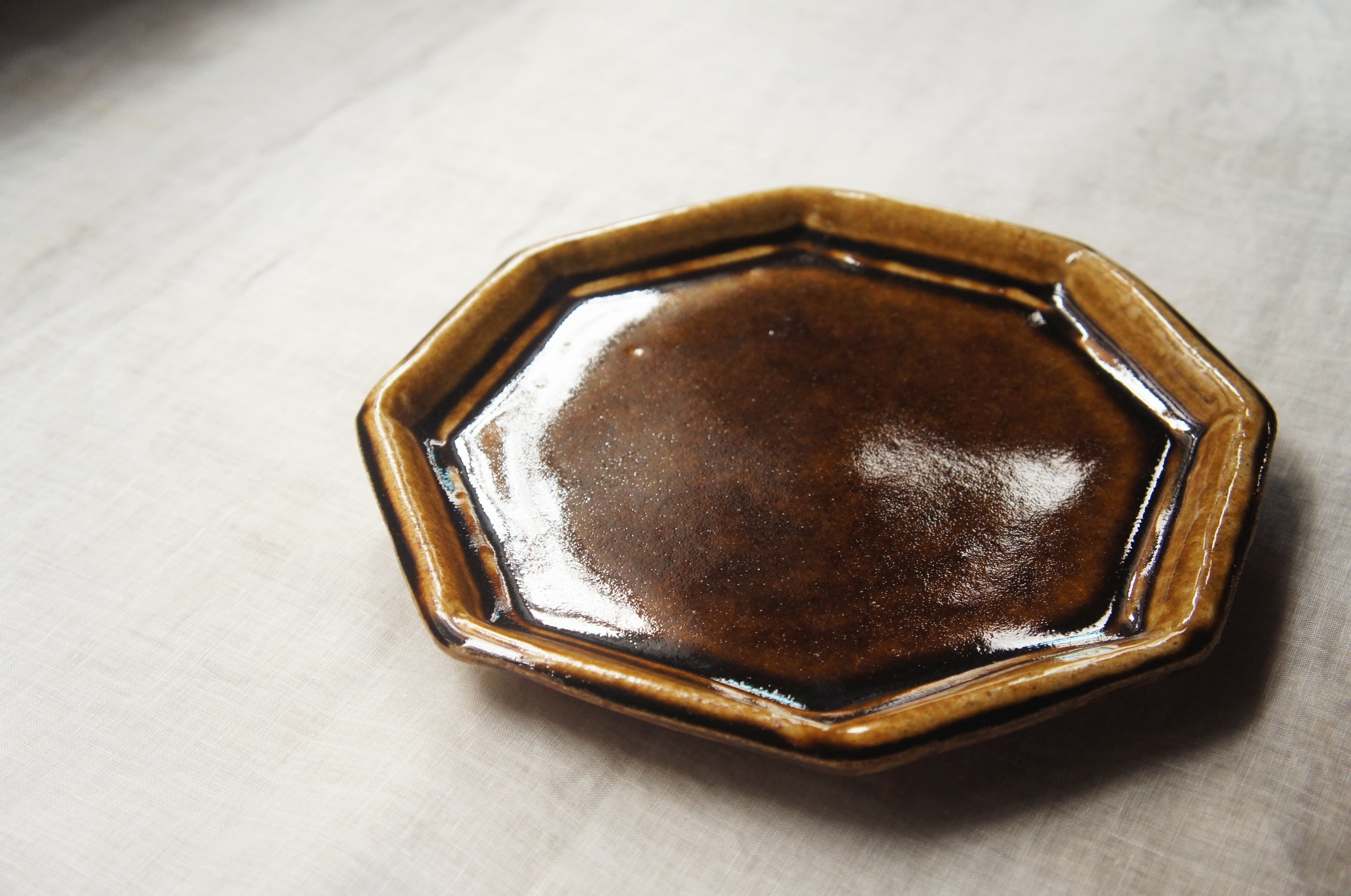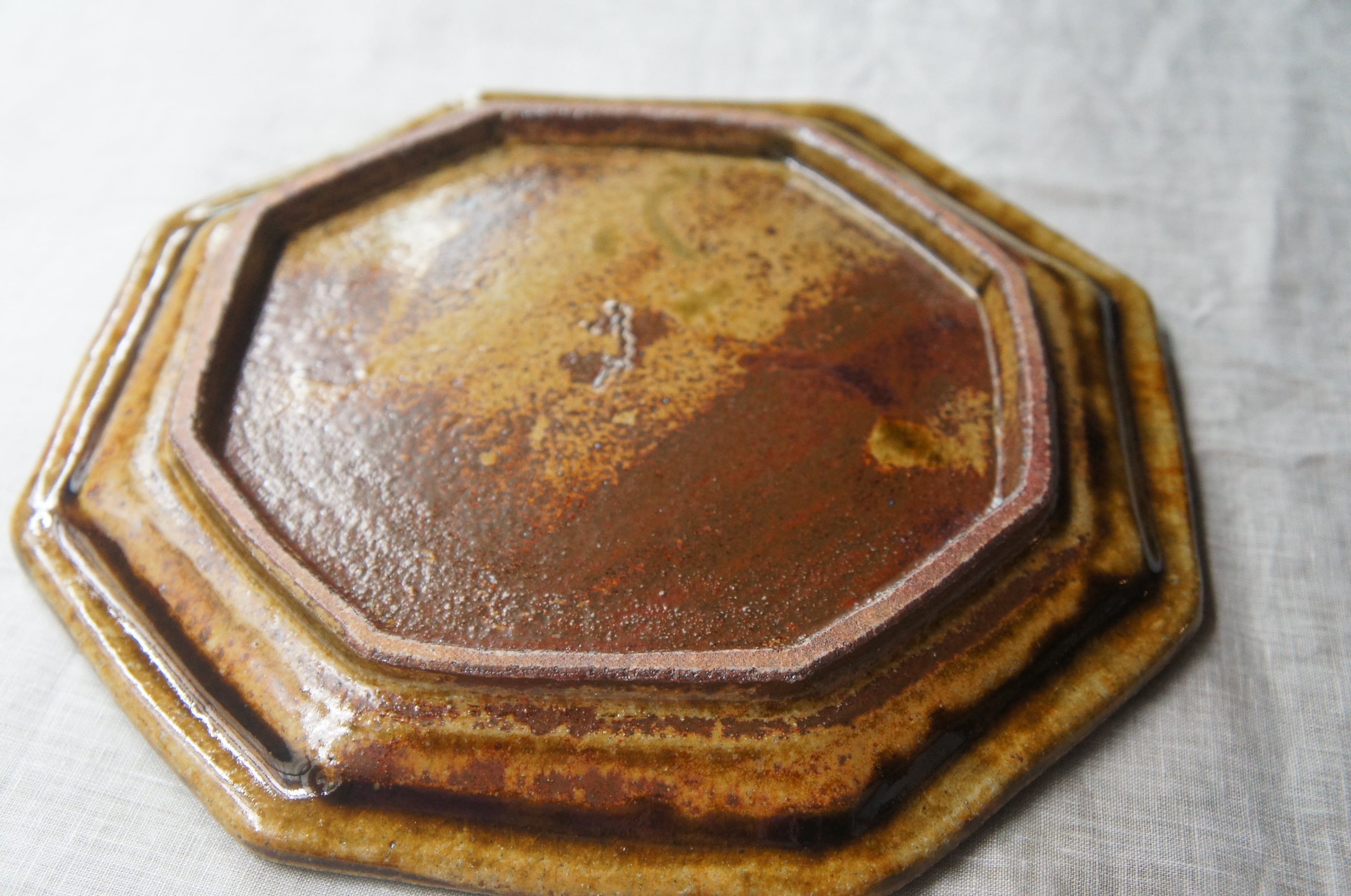 しっかりとした厚みと温もりの八角形のプレート。大サイズ。