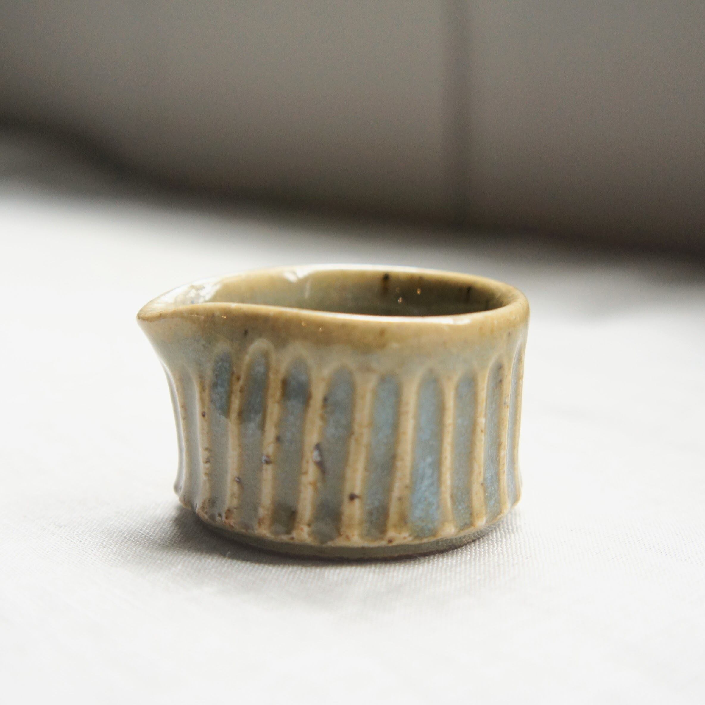 天草の陶房スイさんのミルクピッチャー、ミニサイズ。 丁寧なしのぎに、自然に流れる水色灰の釉薬が入り込み、やさしい表情です。 ご自宅でも、こういうちょっとしたアイテムにこだわるだけで、 一気にカフェ感が高まります! 【 サイズ 】 直径約5センチ、高さ約3.0センチ ※ 工芸品は、手作業で作られているため大きさ、形、色、模様、風合いなど、1点1点個体差がございます。ご理解の上、ご購入をお願い致します。