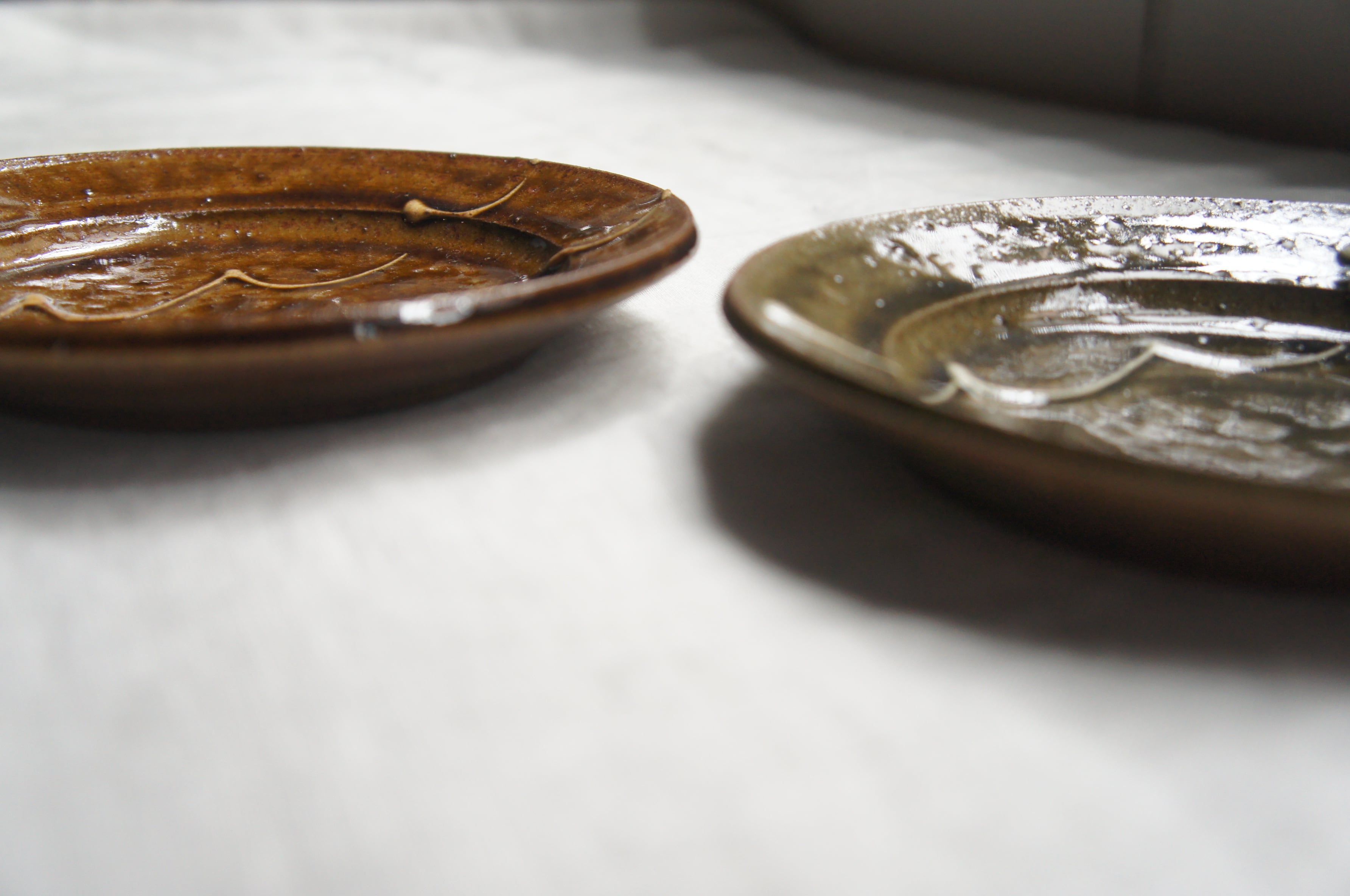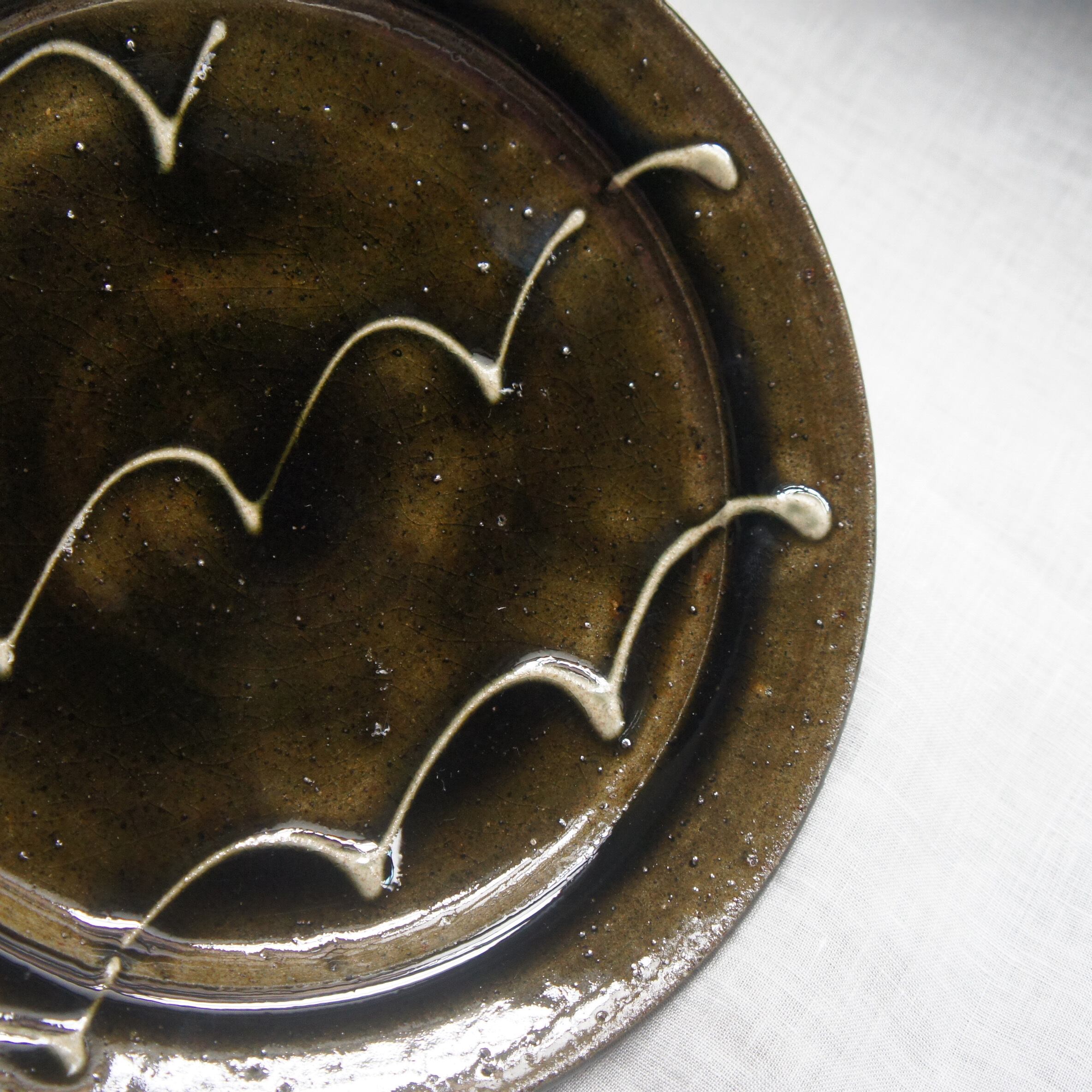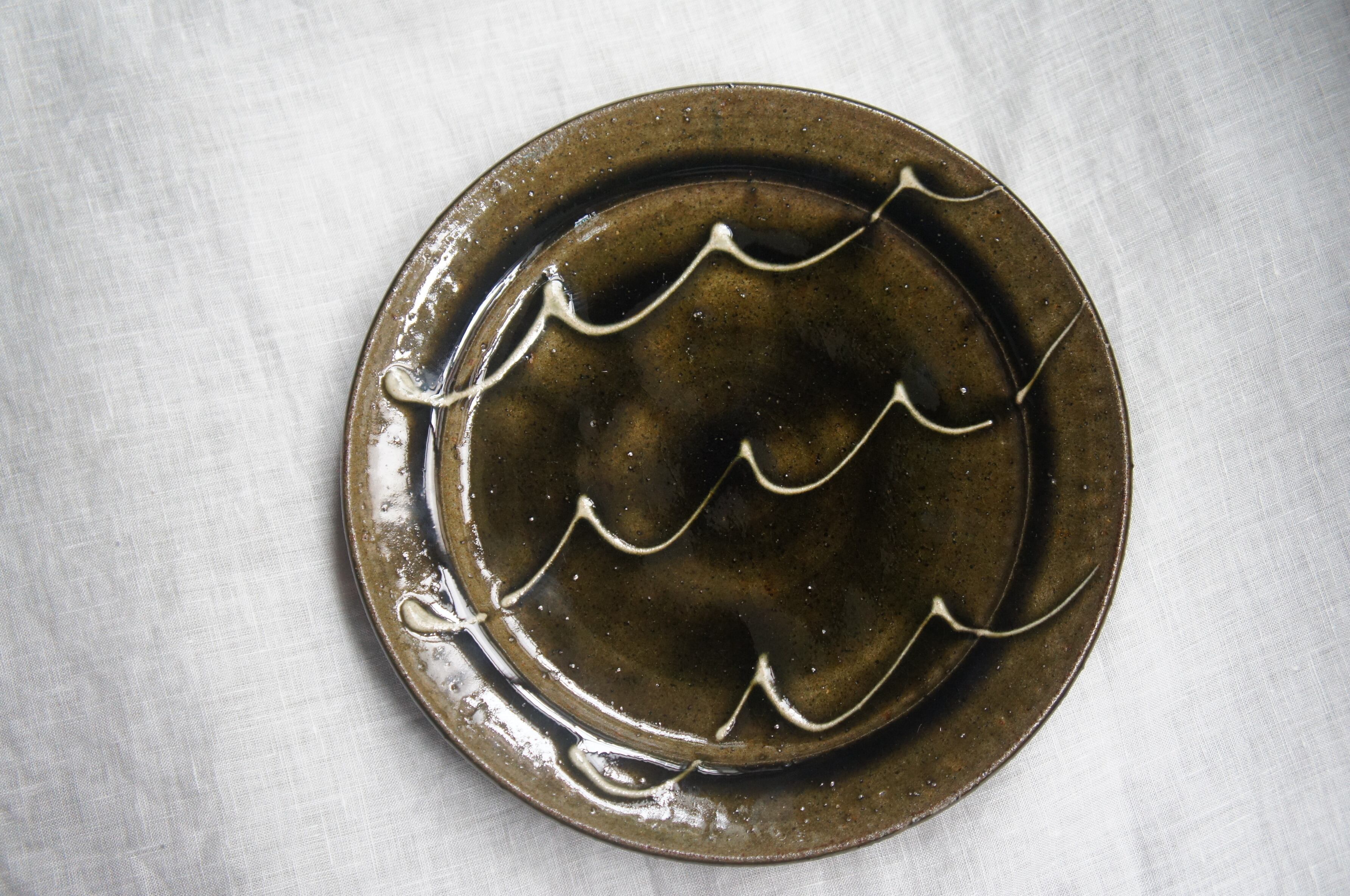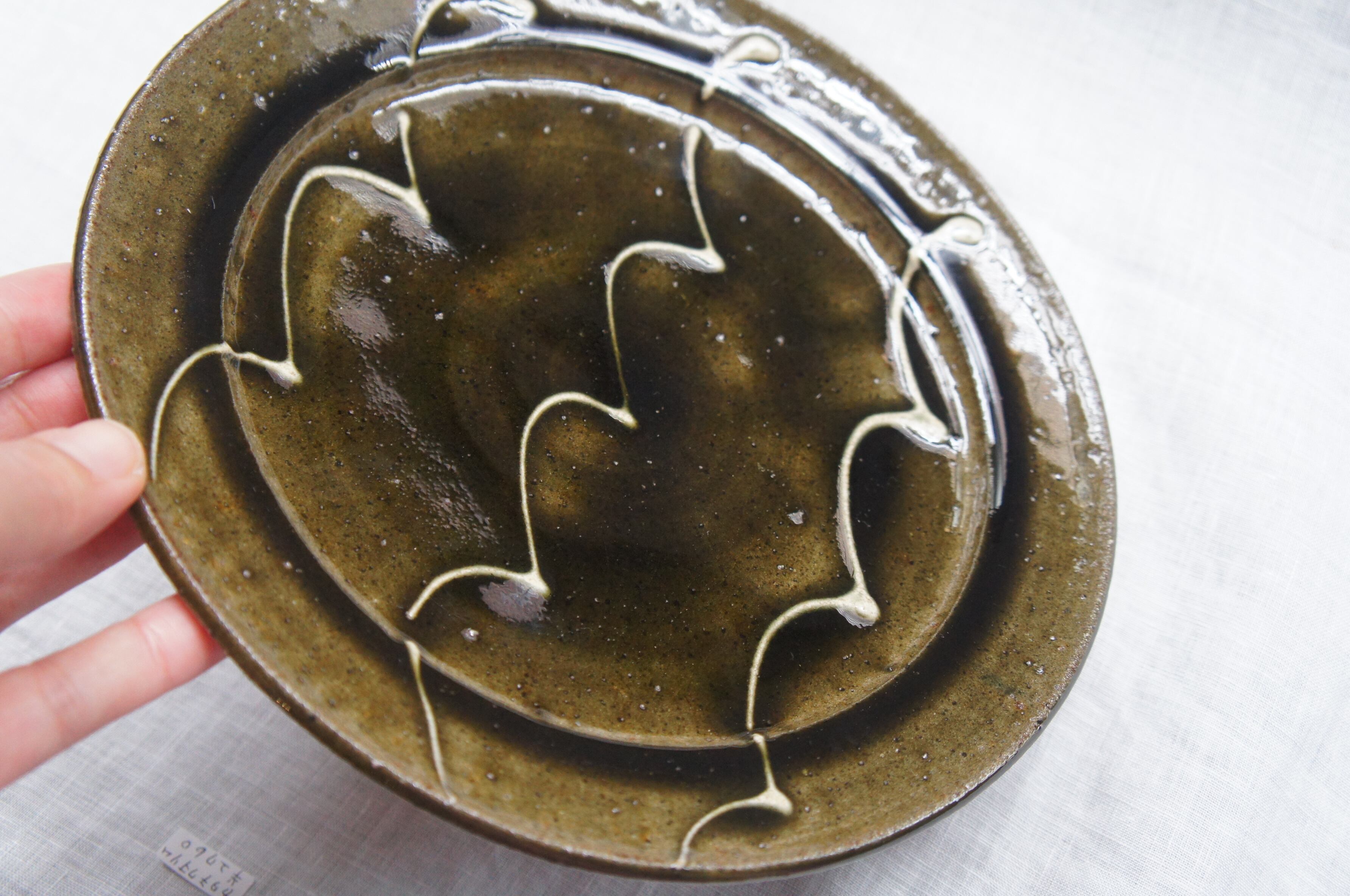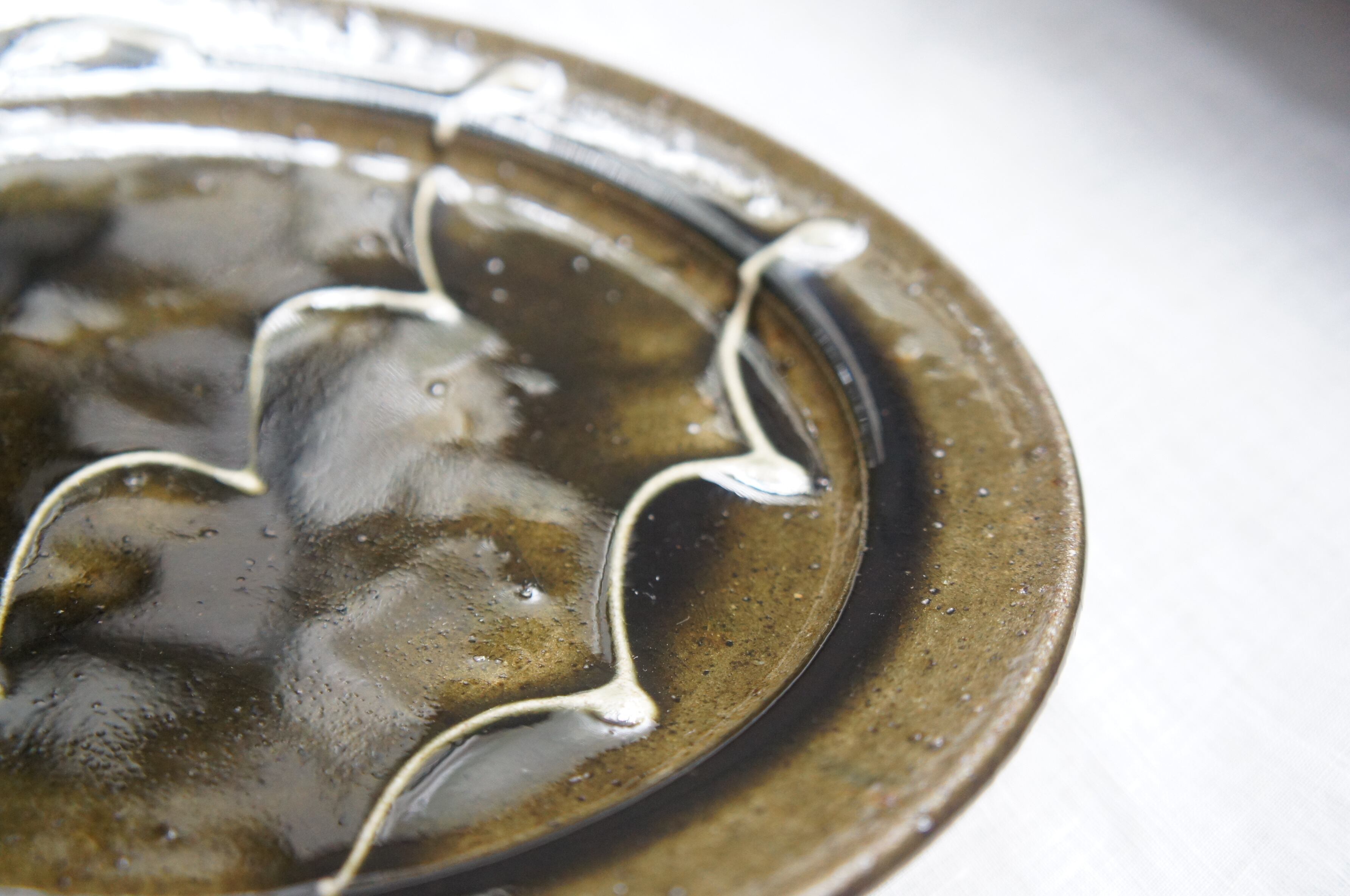 熊本市の陶房カタチさん 沖縄の北窯で修行後、熊本へ帰郷して独立。 落ち着いたオリーブブラウンの釉薬に、やわらかく彫り込まれた模様。 一つひとつ手仕事で施された線は、どこかリズムを感じさせ、素朴さの中にさりげない個性が光ります。 普段使いにこそ選びたい、静かな存在感のあるうつわ。 食卓にそっと寄り添い、日々の景色を少し豊かにしてくれます。 サイズ:直径約22センチ 高さ約3センチ