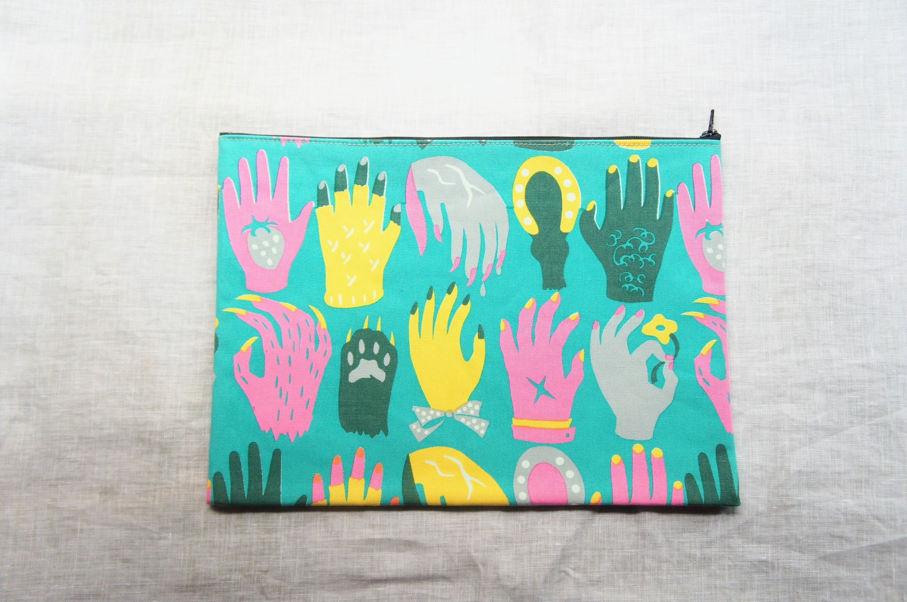 • makumo ぺたんこポーチL【テテ/エメラルド】