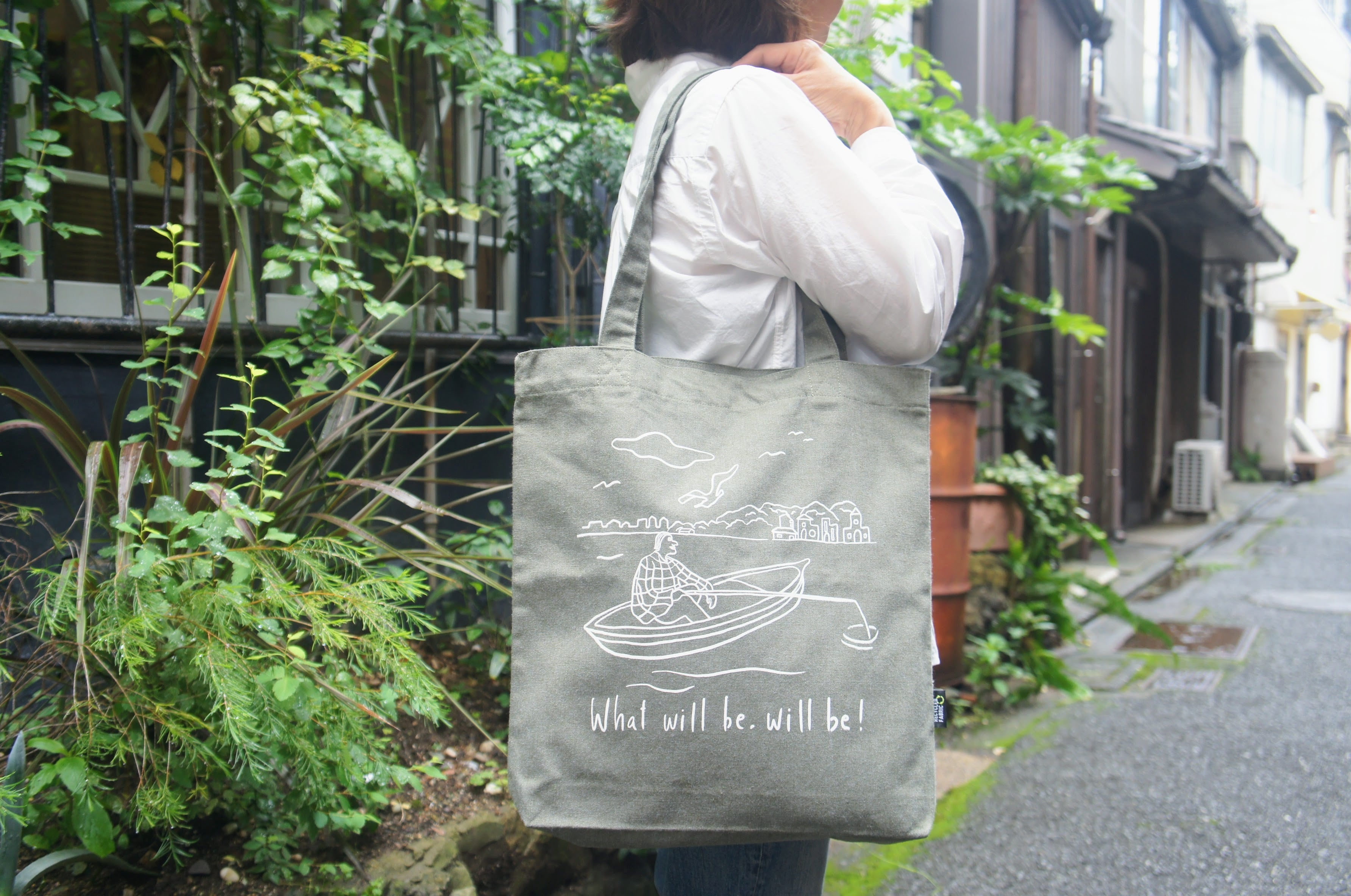 トートは船底タイプで、7オンスのやや厚手のリサイクルコットン70%、再生ポリエステル30%を使用。しっとりとした高級感のあるおしゃれな雰囲気のトートバッグです。