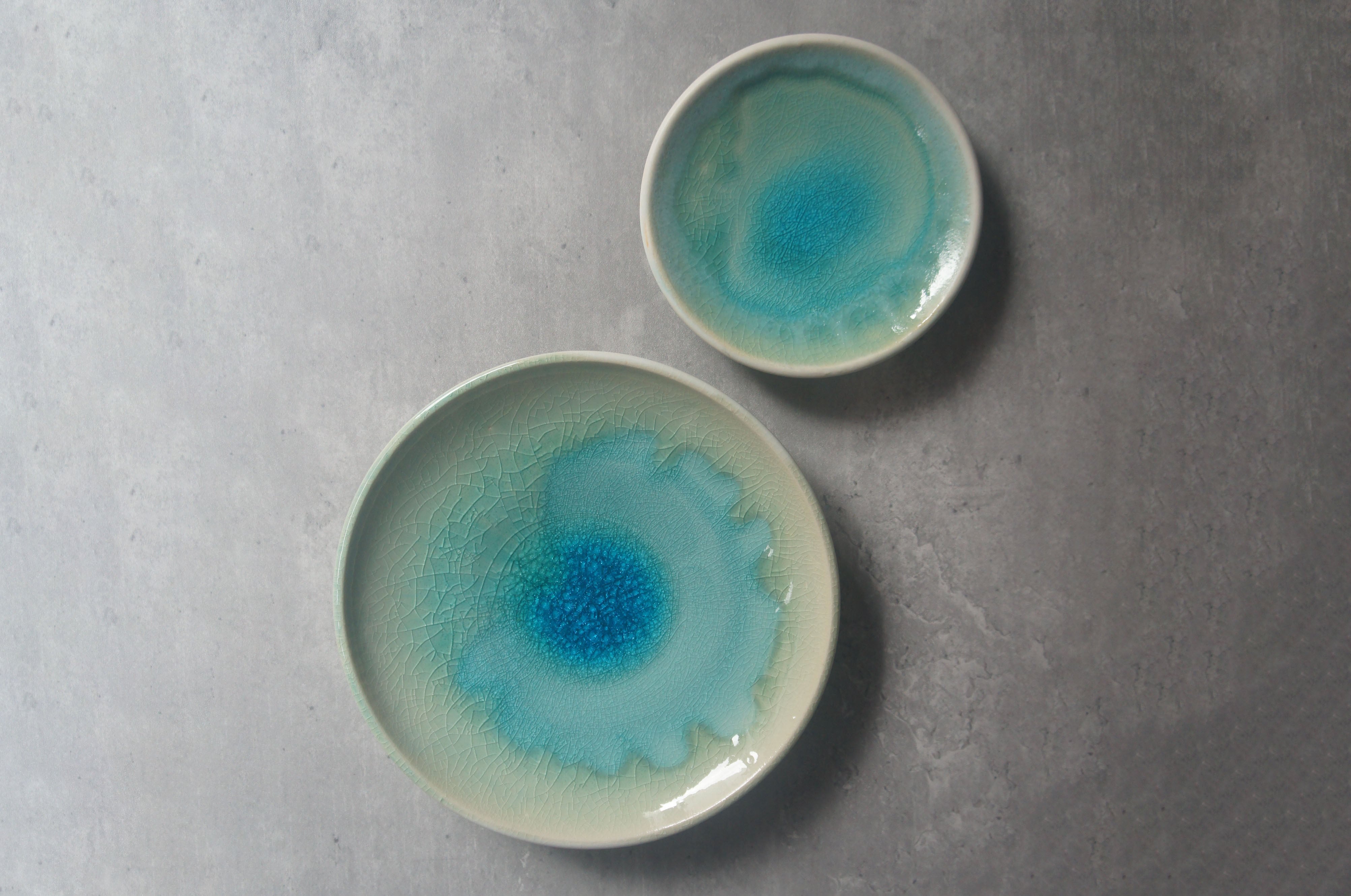 砂地のような白地にペルシャブルーの組み合わせが美しいプレート。